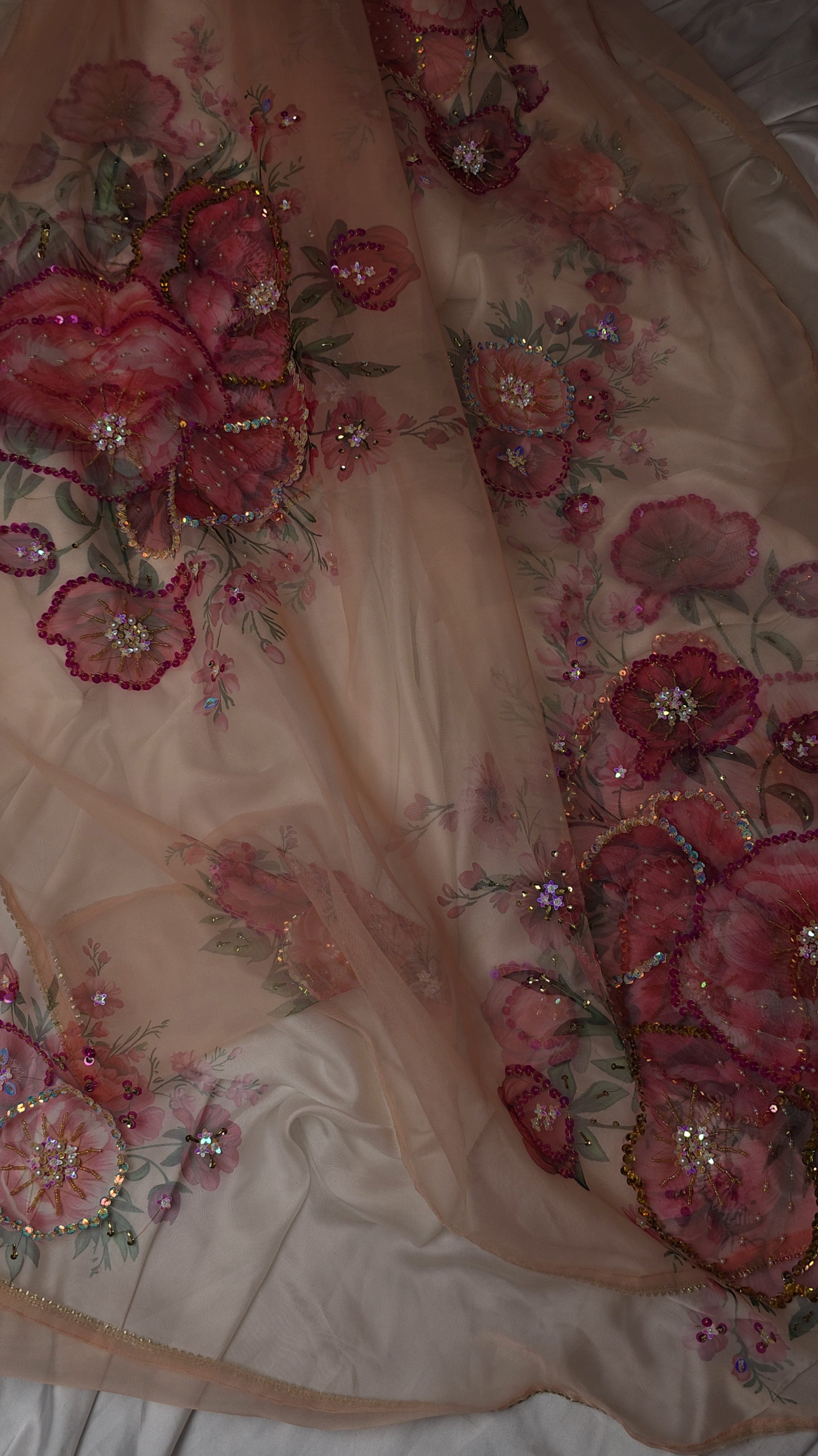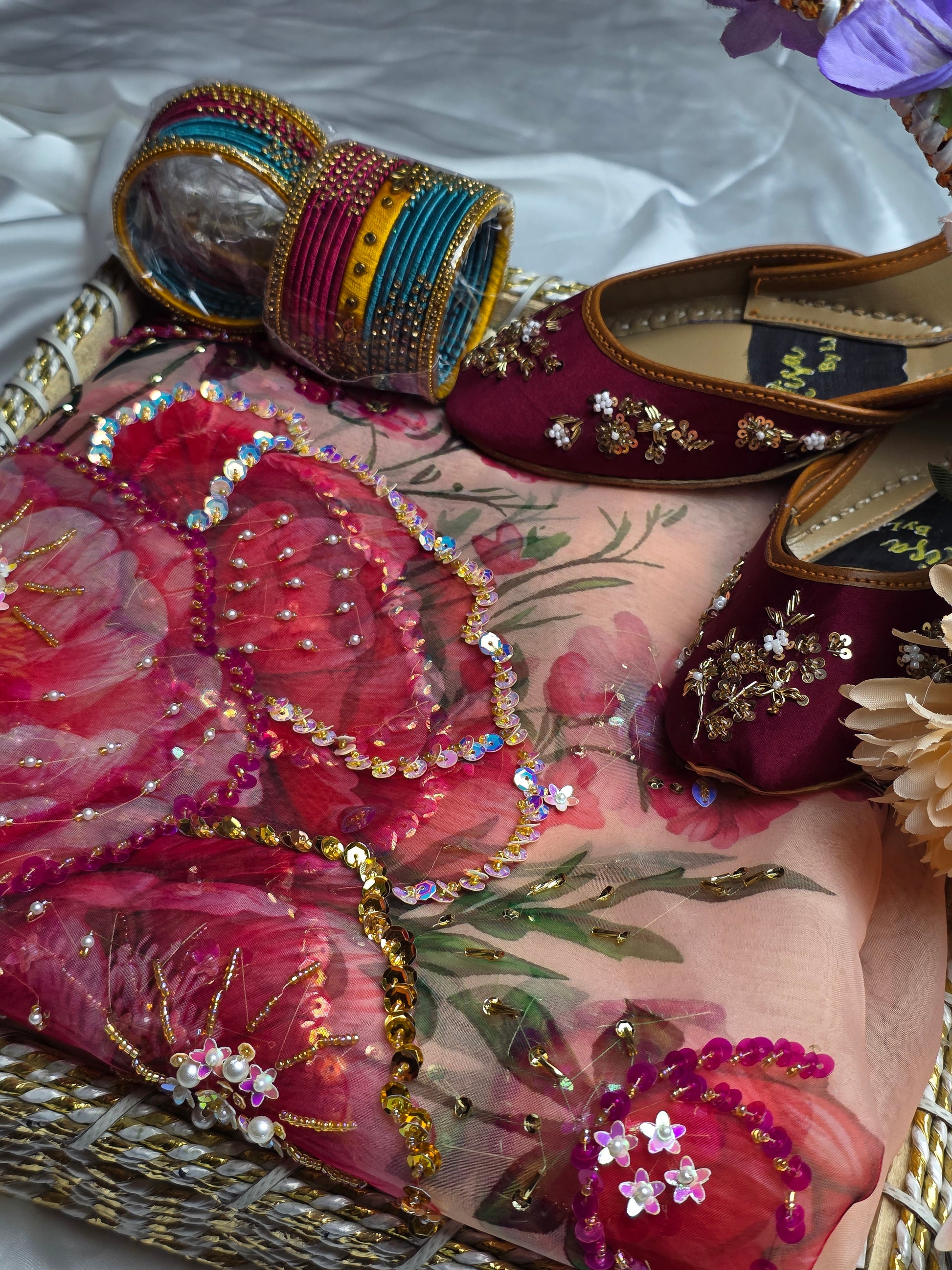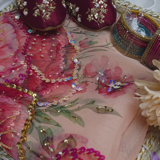 Gift your loved ones something truly special with this screen-printed dupatta, adorned with exquisite hand embellishments.